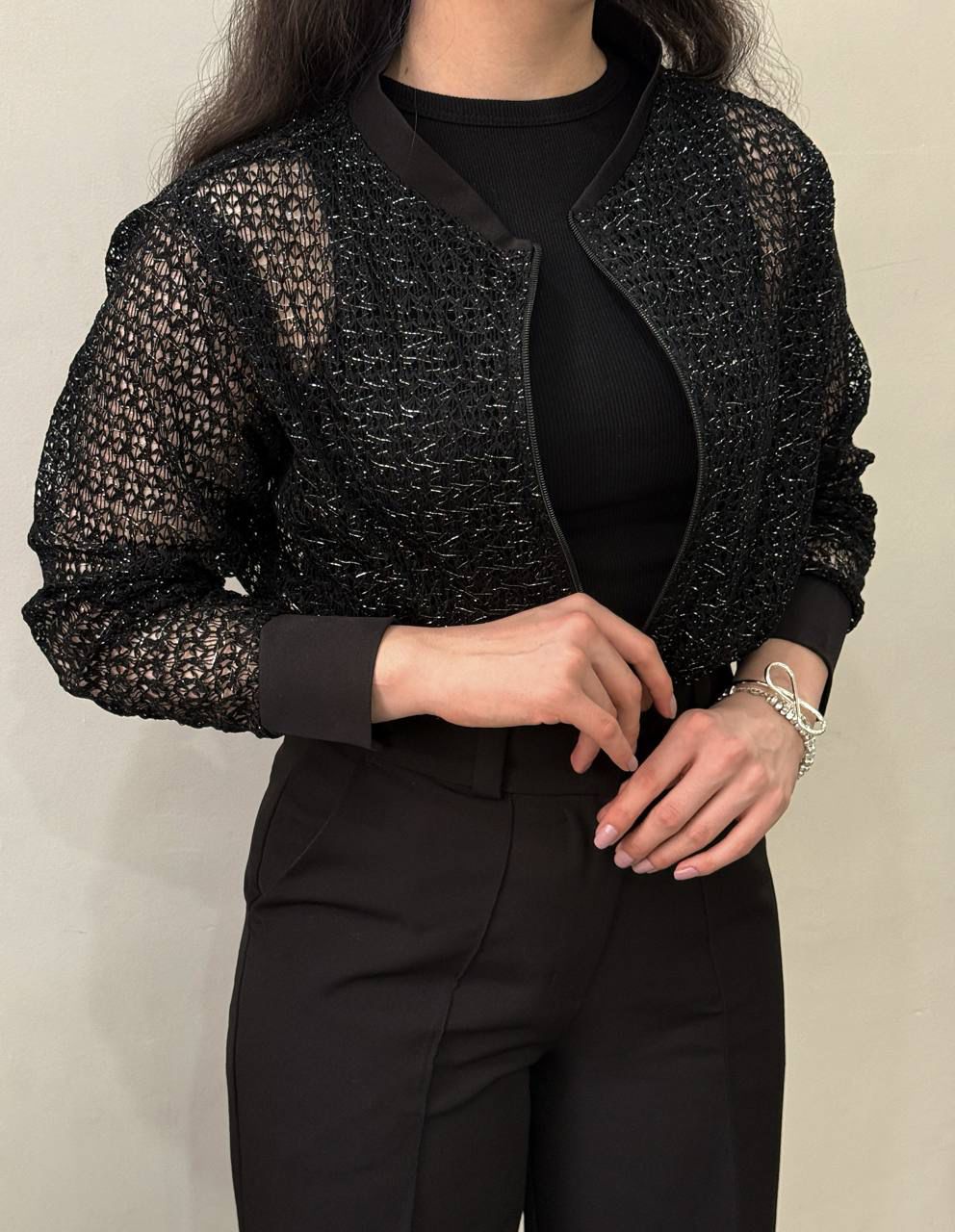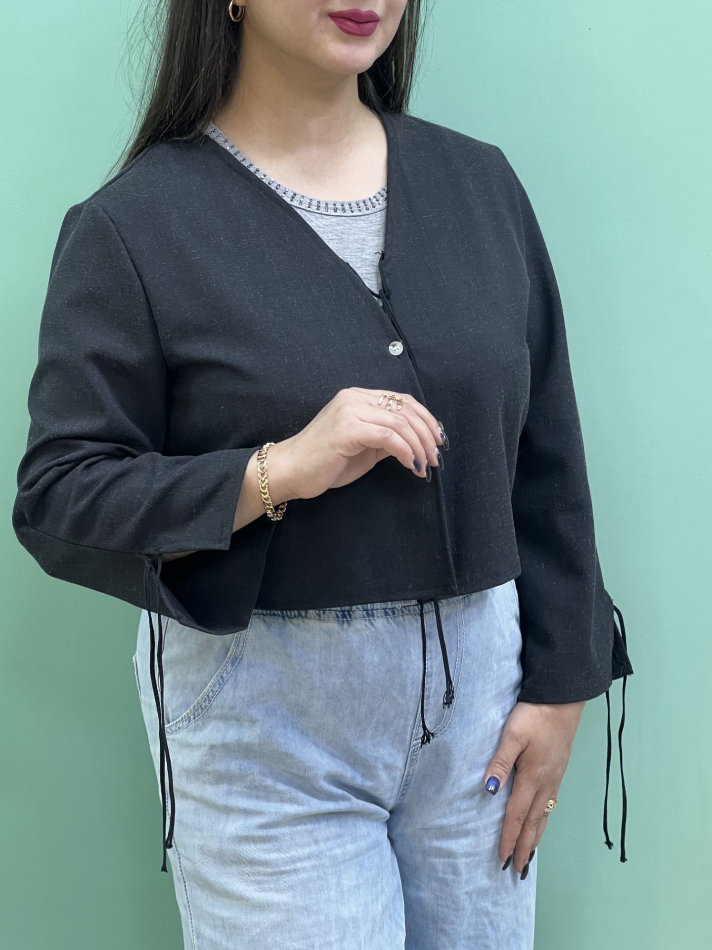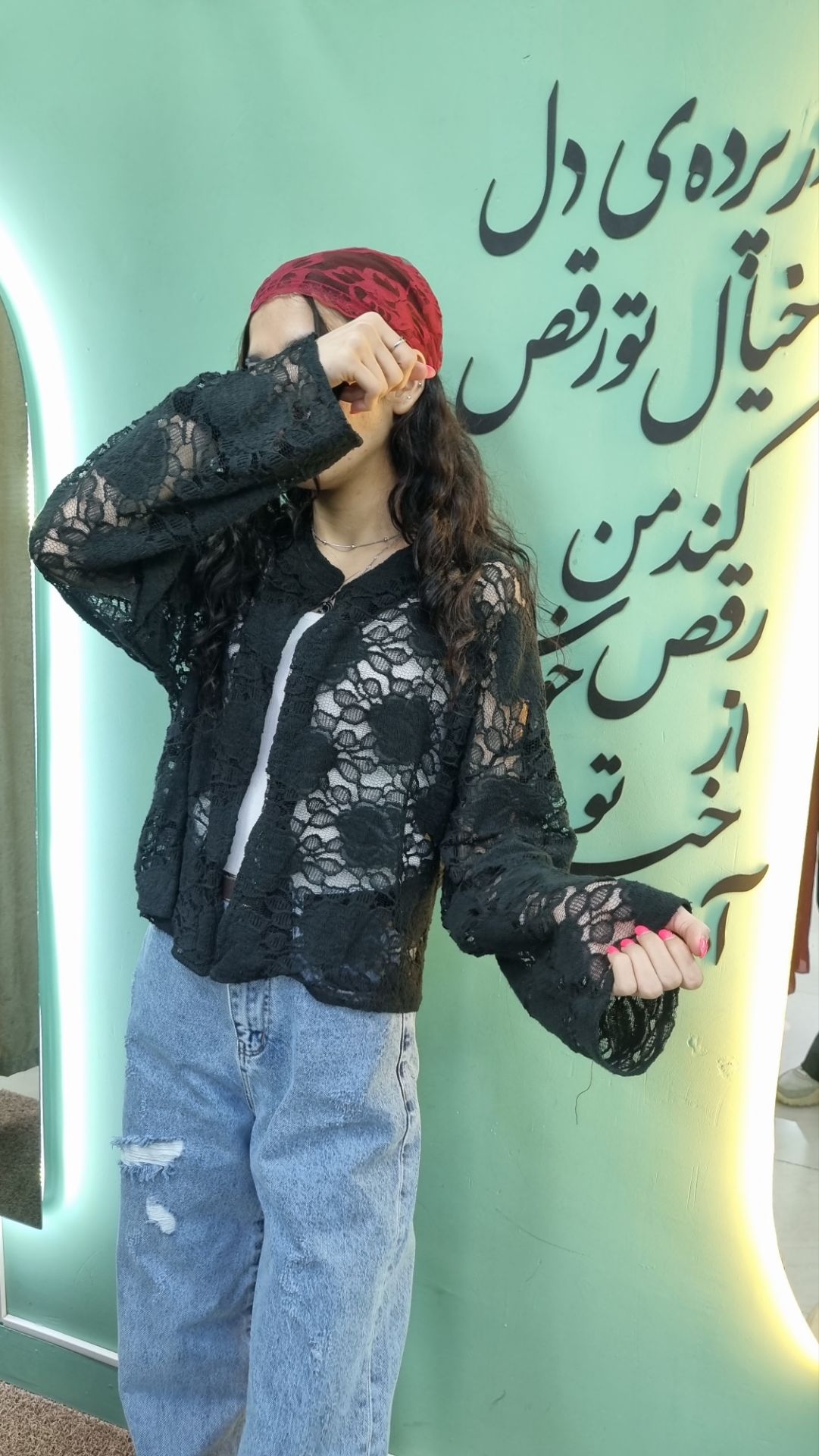 کراپ آستین بلند جلو باز جنس دانتل فری سایز