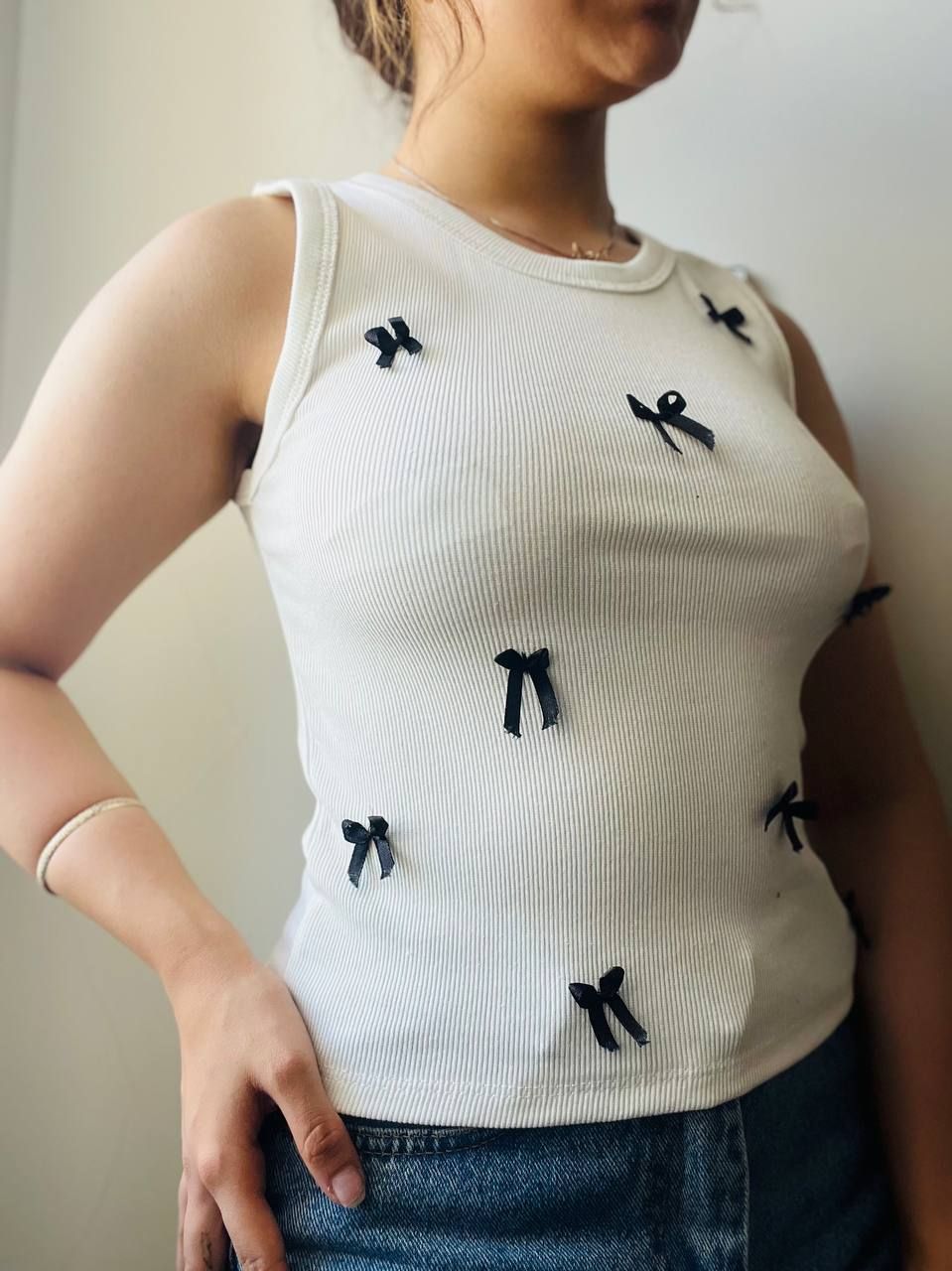 تاپ حلقه ای بیسیک سفید و مشکی برند مون جنس کبریتی پنبه