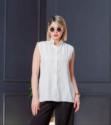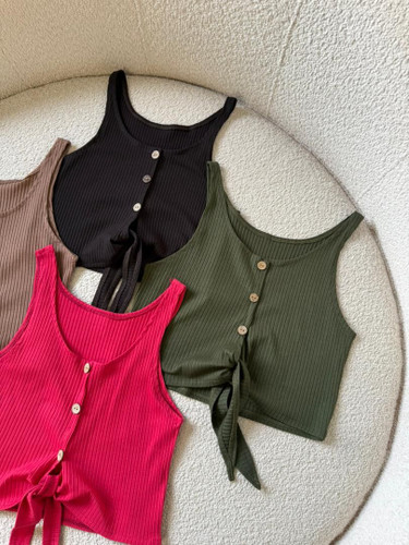 تاپ زنانه دخترانه جلو دکمه جنس الیزه سبک و راحت با تنخور ساده و شیک