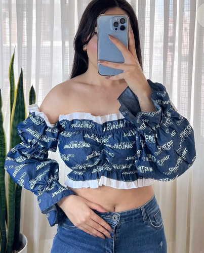 کراپ یقه قایقی آستین بلند طرح orjinal فری سایز وارداتی