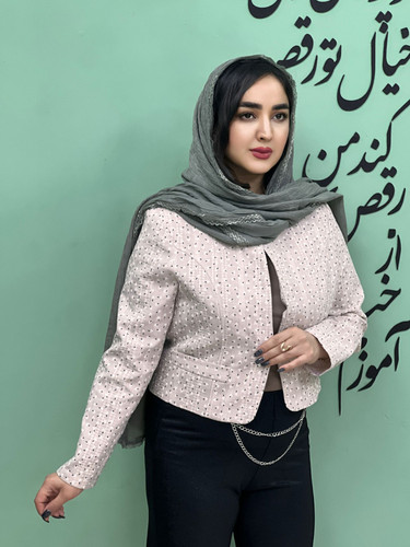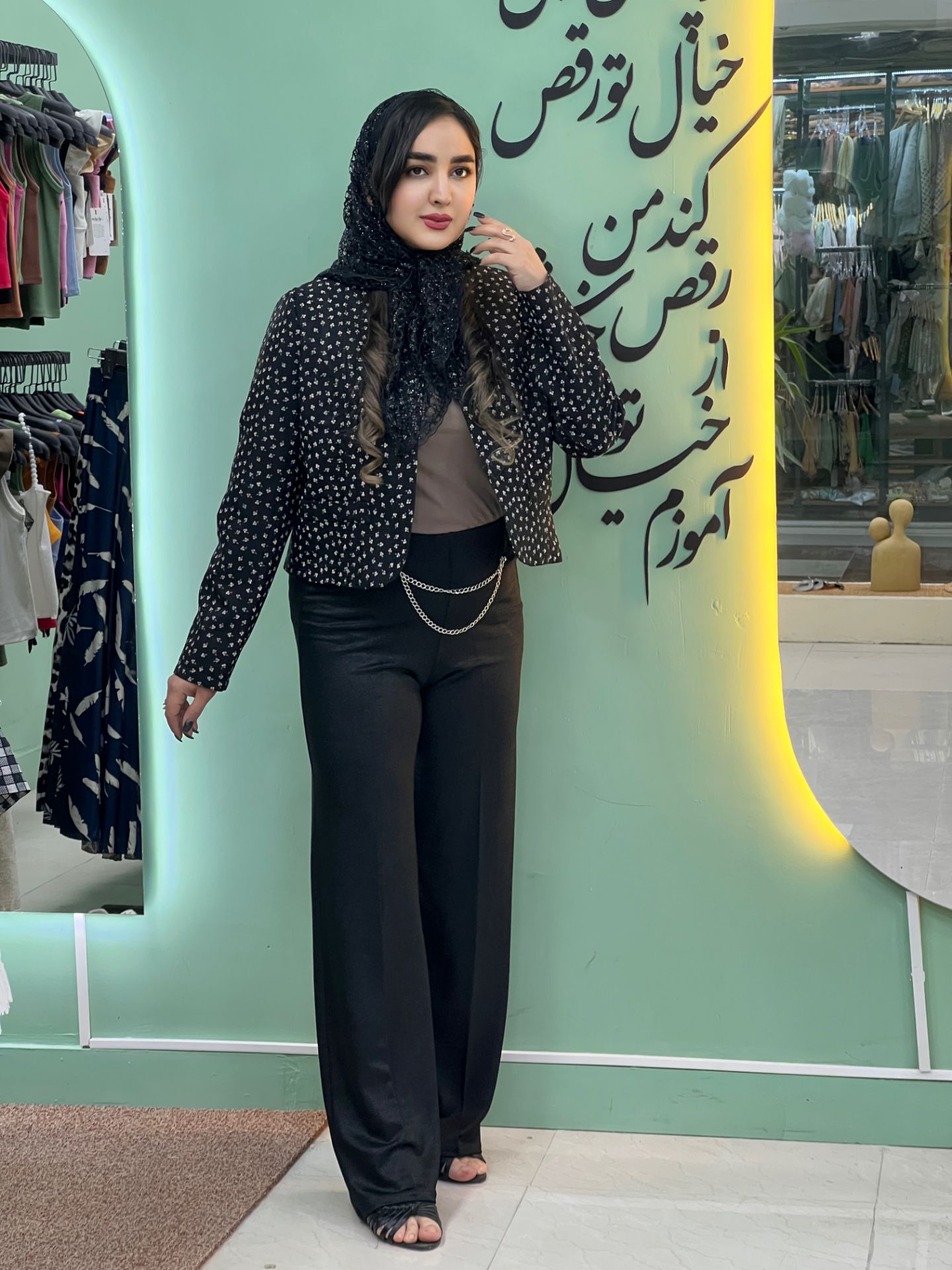 کت یقه انگلیسی جلو دکمه جیب نما نگین دار فری سایز
