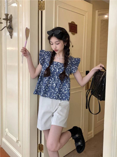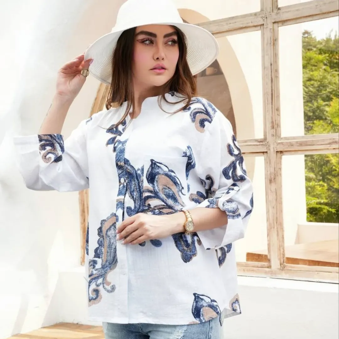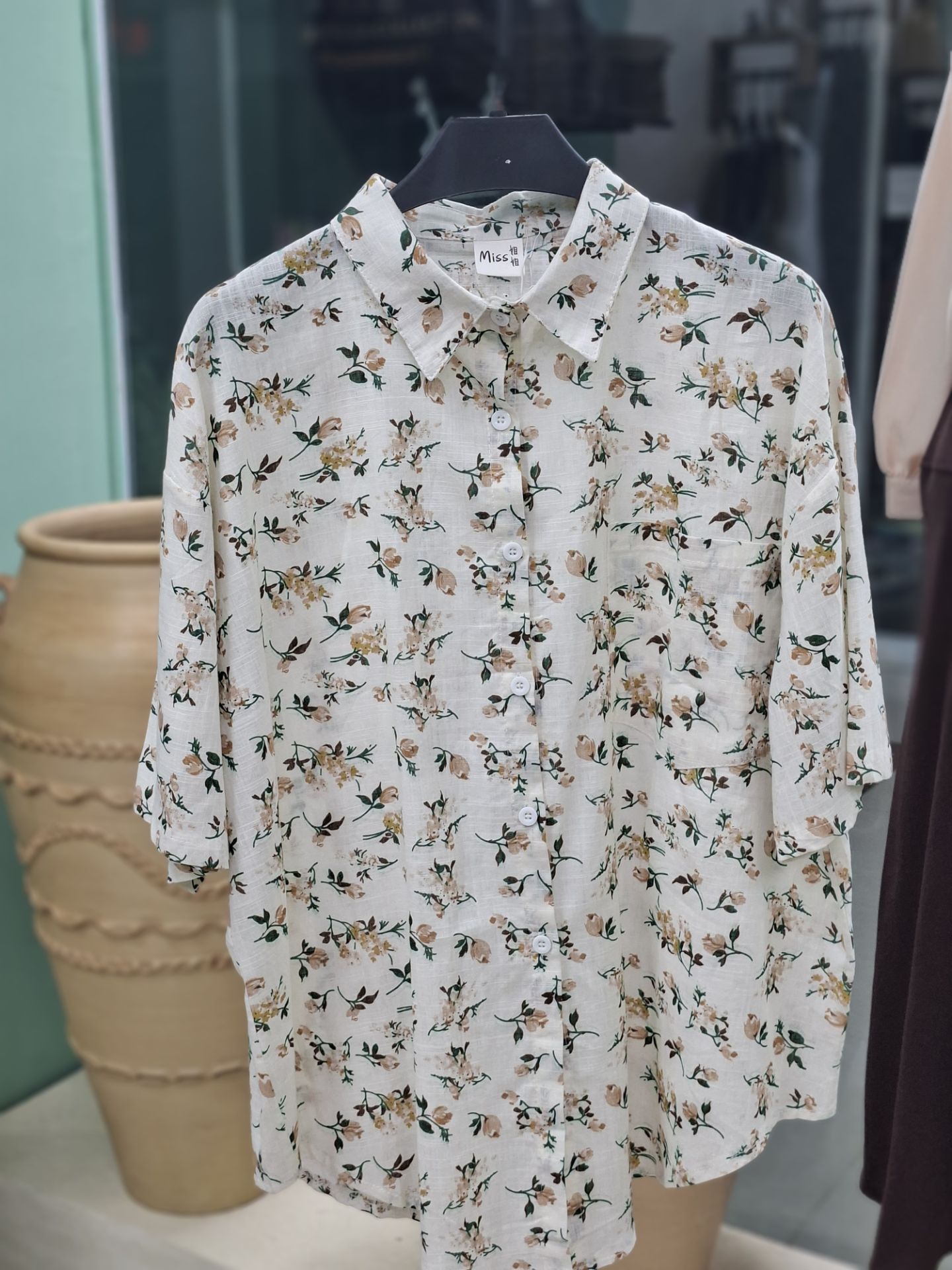 شومیز زنانه زیر هلال آستین کوتاه گل دار وارداتی نخ کتان