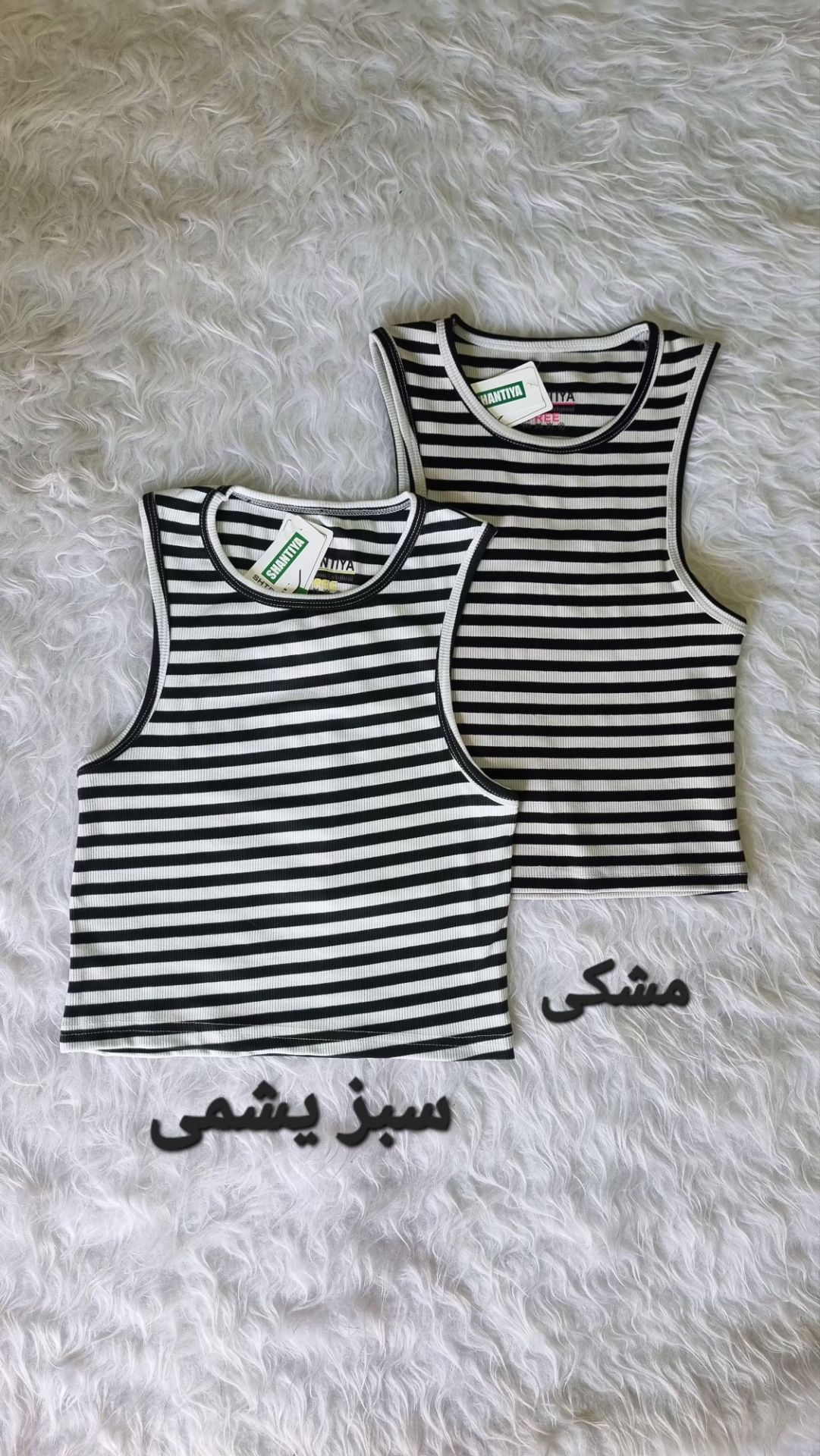 کراپ تاپ حلقه ای طرح راه راه جنس کبریتی فری سایز