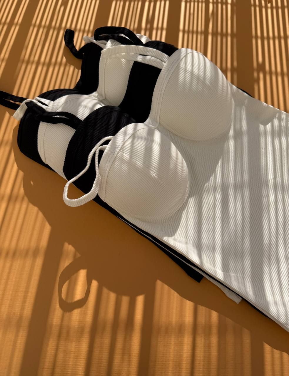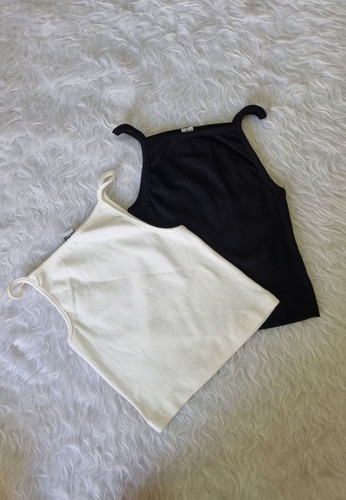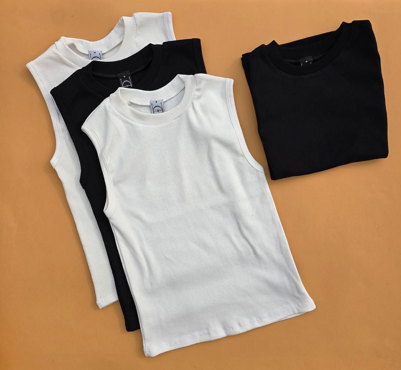 تاپ بیسیک دوبند مشکی و سفید جنس پنبه کبریتی برند B.K