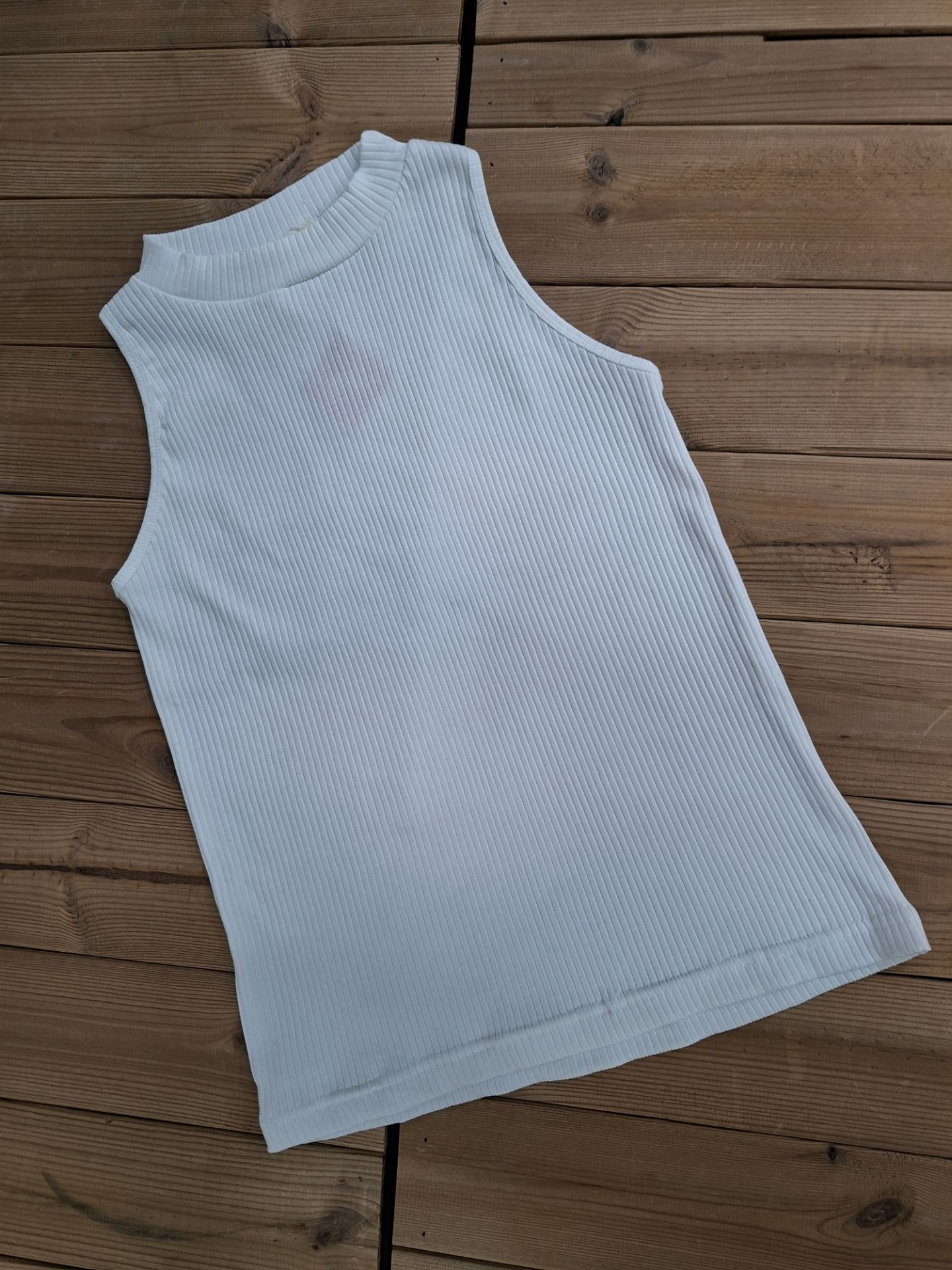 تاپ حلقه ای رنگ سفید جنس کرکره یقه 2سانت برند H&M