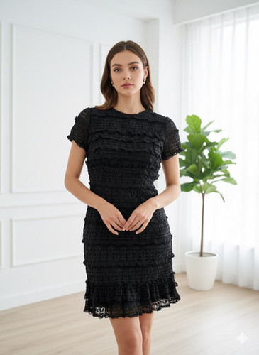 پیراهن کوتاه جنس گیپور آستردار مجلسی وارداتی برند شین