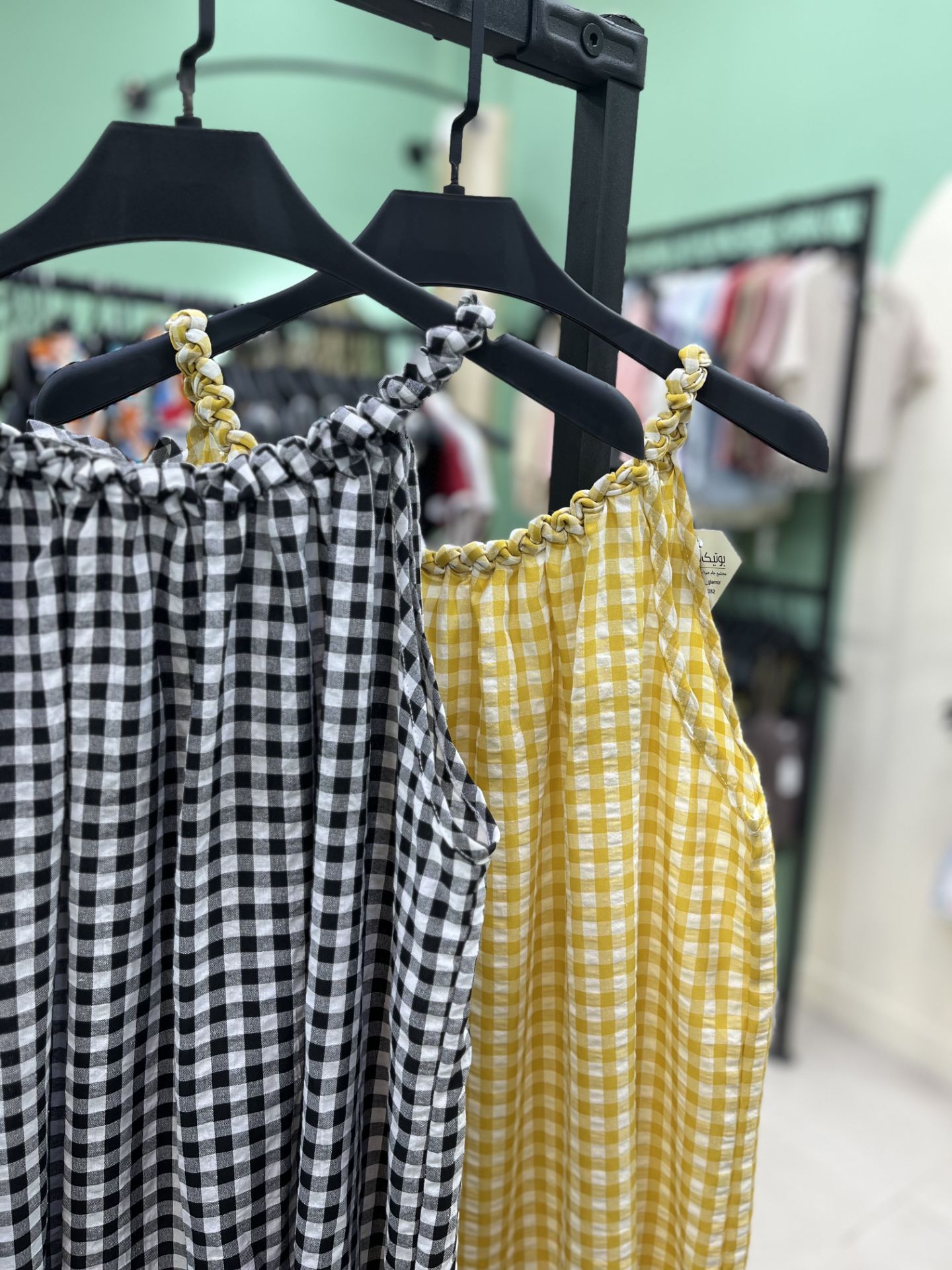 پیراهن دو بندطرح چارخونه جنس نخی بدون چروک،فری سایز وارداتی