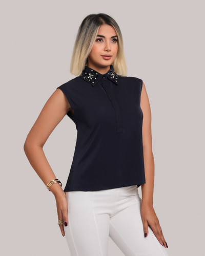 شومیز حلقه ای جنس الیزه یقه جواهر دوزی برند لامیرا