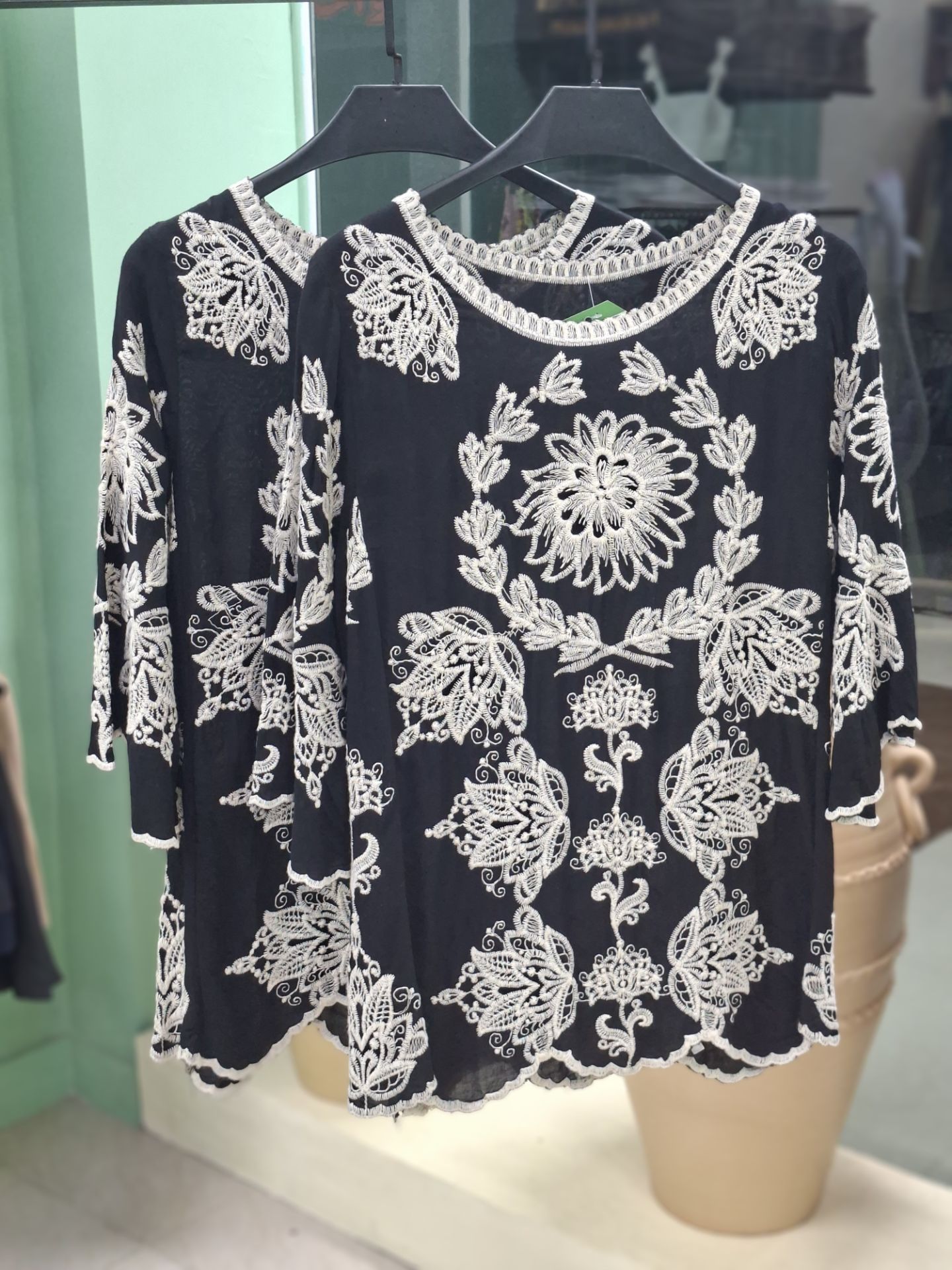 تاپ حلقه ای یقه گیپور جنس الیزه زیر مانتویی برند moda