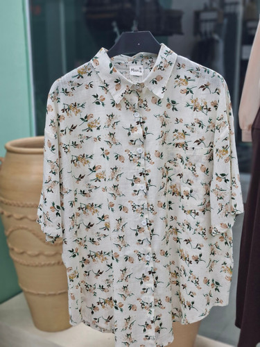 شومیز فانتزی جلو دکمه چین دار طرح گل وارداتی فری سایز