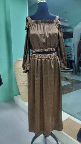 ست کراپ دامن ساتن نگینی مجلسی شیک برند manisa