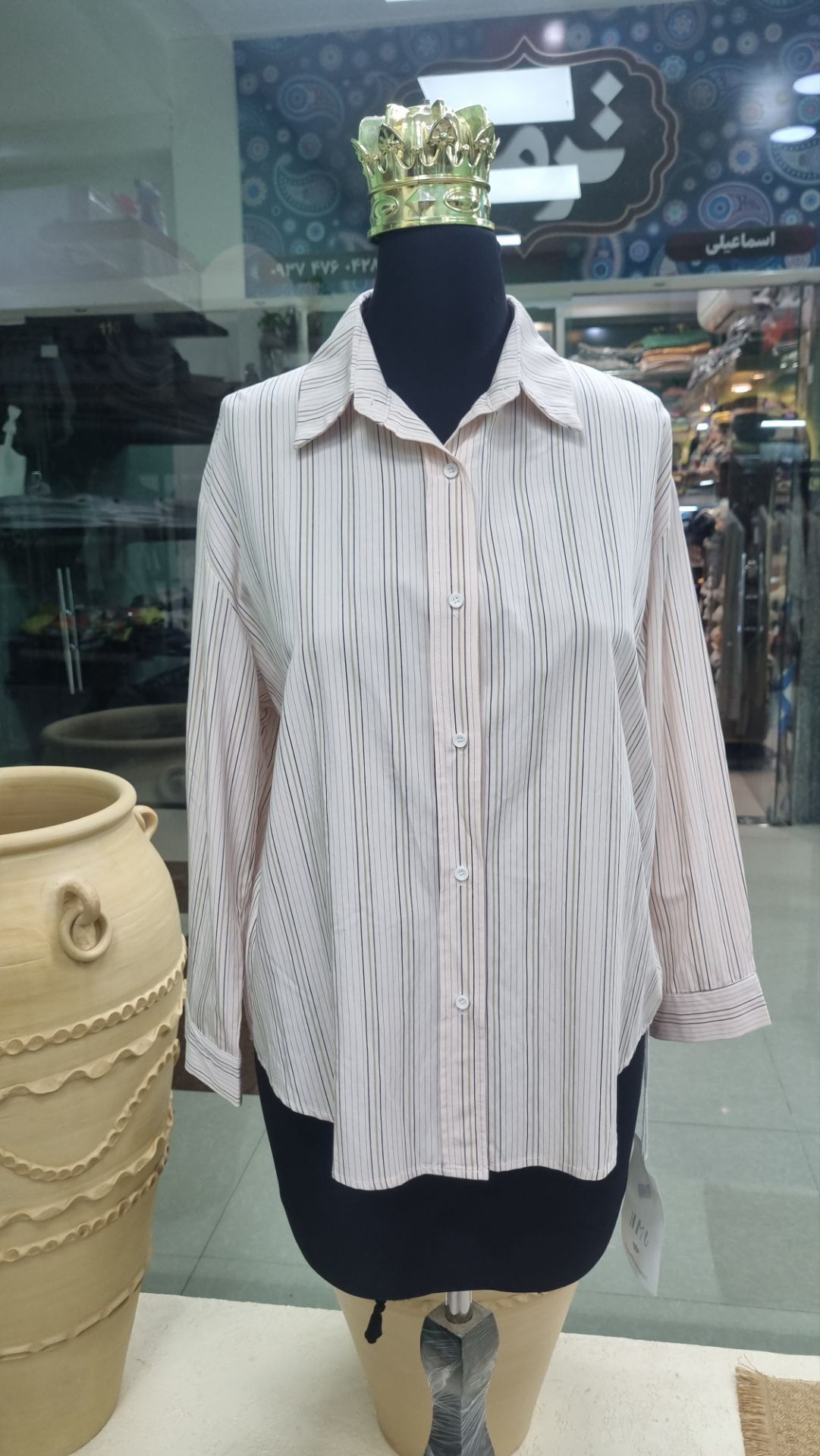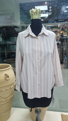 شومیز تک رنگ آستین بلند طرح راه راه جنس نخ کتان وارداتی