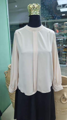 بلوز آستین بلند یقه قایقی توسی روشن جنس کبریتی مدل saray