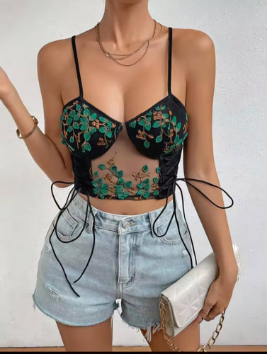 کراپ دوبنده گلدوزی (بندماکارون) برند سارای جنس کبریتی