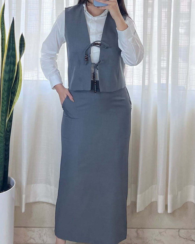ست وست و دامن راسته پشت چاک جنس کرپ ،وارداتی
