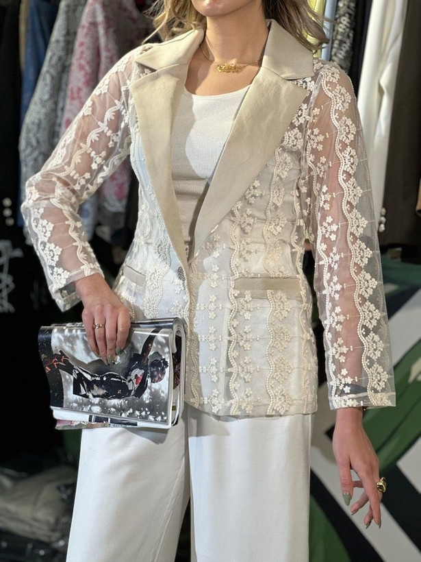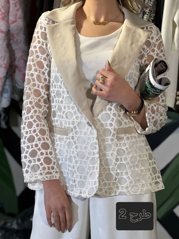 کت مجلسی گیپور شیشه ای رنگ کرم فری سایز
