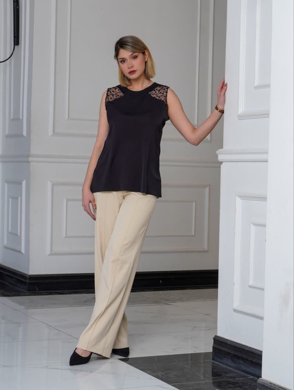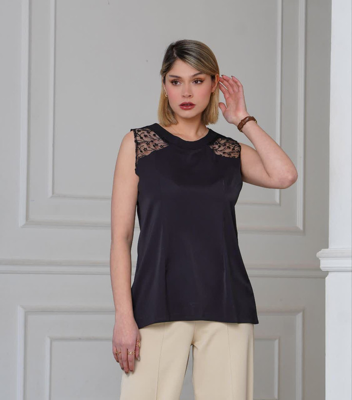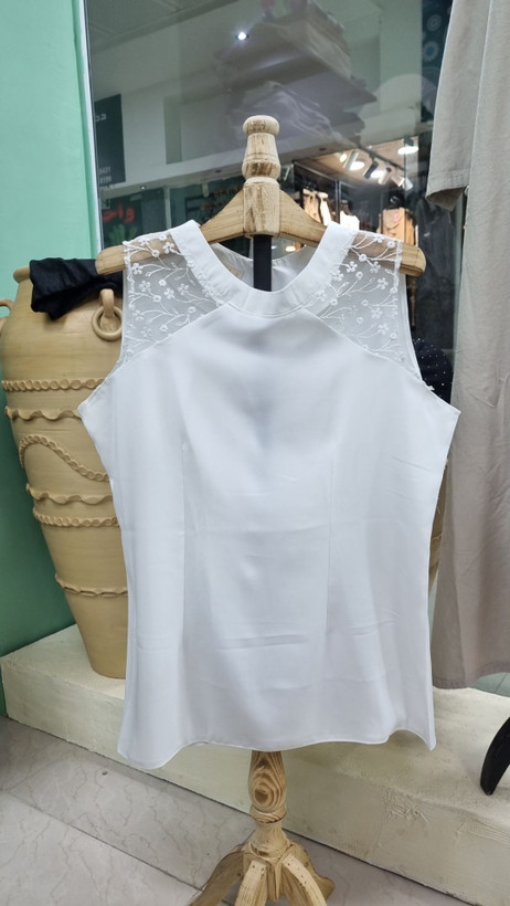 تاپ حلقه ای یقه گیپور جنس الیزه زیر مانتویی برند moda
