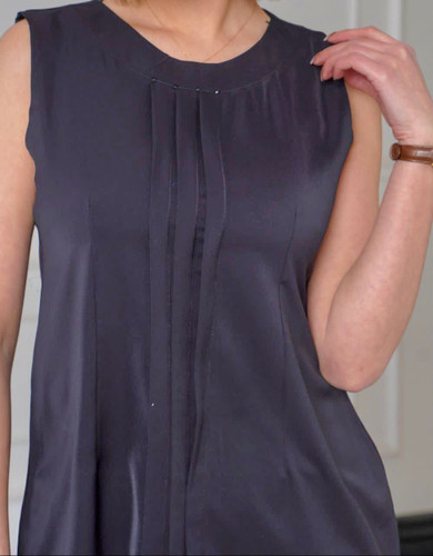 تاپ کراپ یقه قایقی چین دار مشکی جنس کبریتی اعلاء