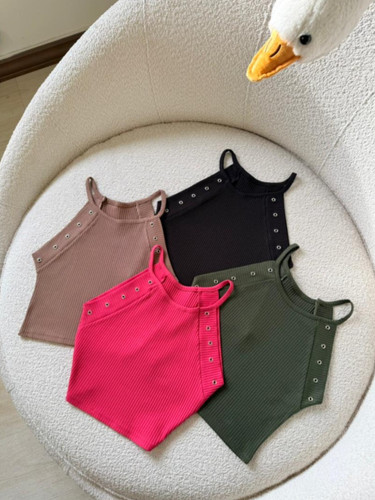 تاپ زنانه دخترانه جلو دکمه جنس الیزه سبک و راحت با تنخور ساده و شیک