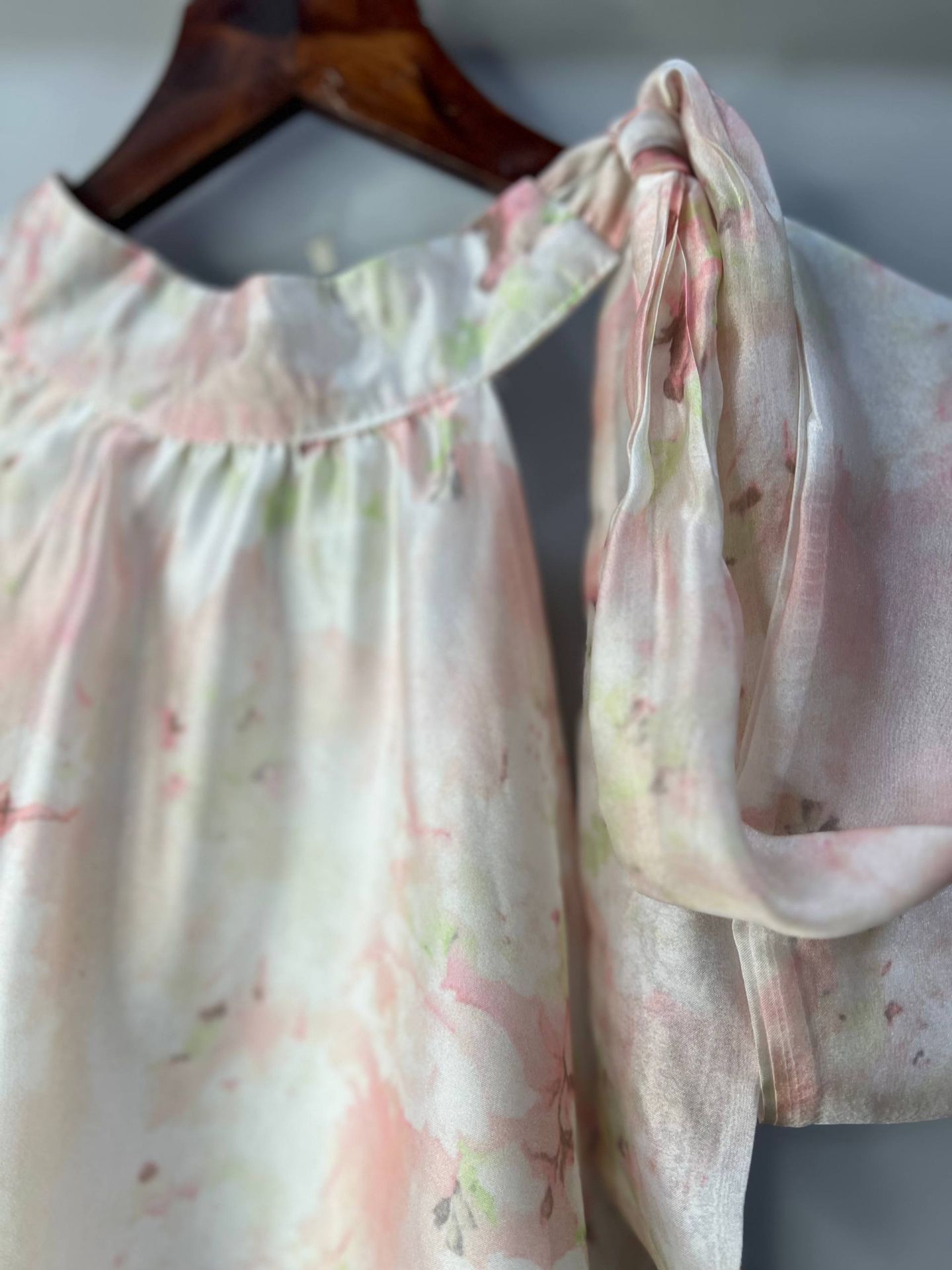 تاپ ساتن حریر آسترکشی شده یقه گره ای وارداتی فری سایز