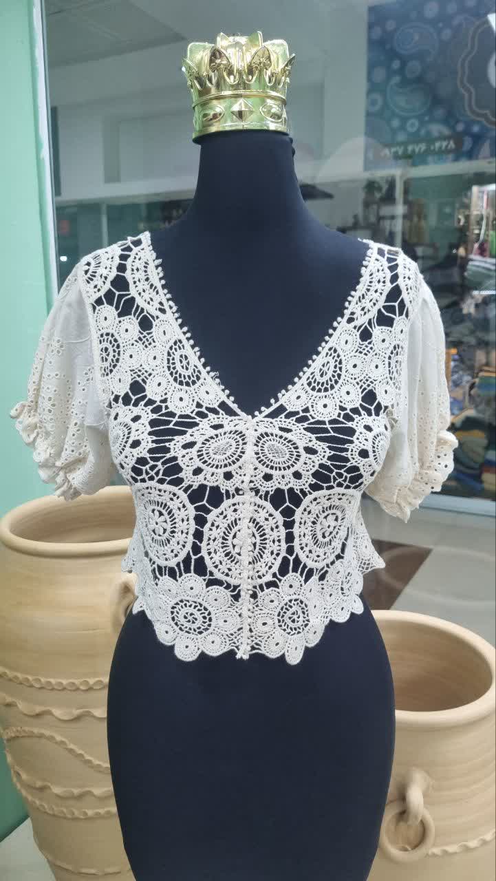 تاپ حلقه ای یقه گیپور جنس الیزه زیر مانتویی برند moda